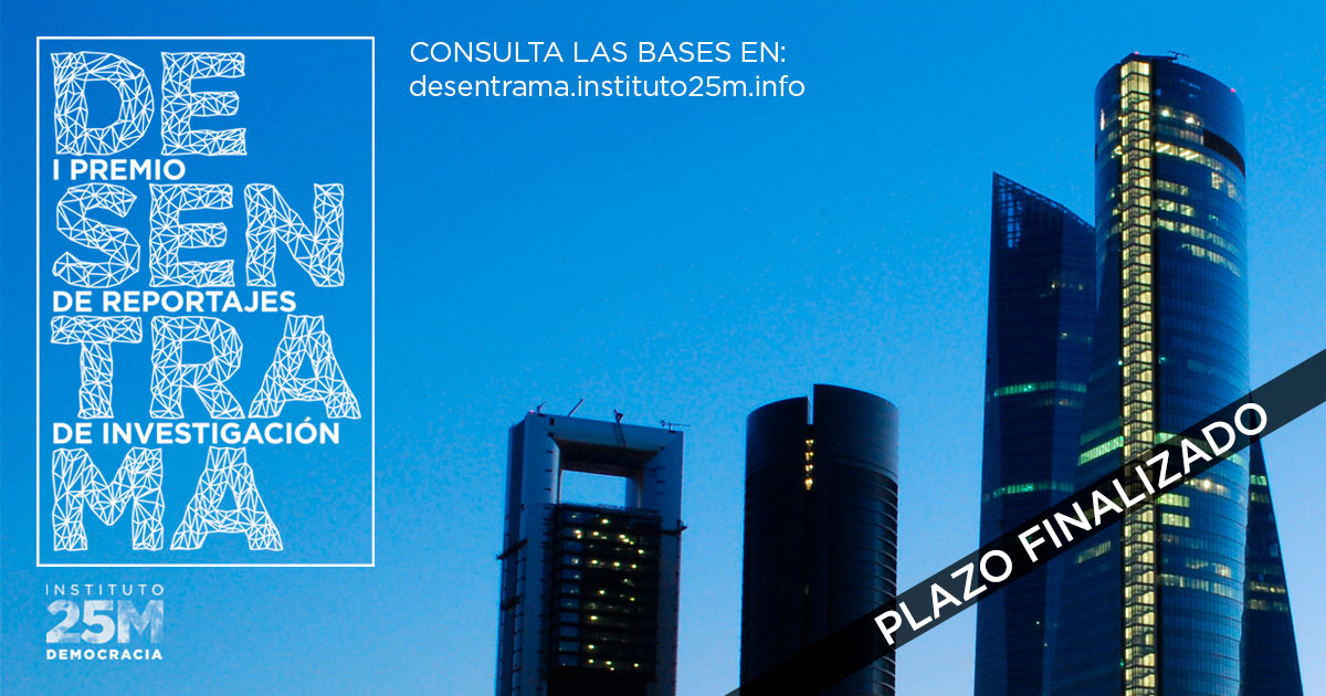 El Instituto 25 de Mayo para la Democracia (I25M) convoca la primera edición de su Premio de Reportajes de Investigación bajo el título Desentrama. El propósito de este galardón es dar reconocimiento a los trabajos que mejor expongan las actuaciones y los atropellos de la Trama en España, es decir, las relaciones que existen entre los poderes políticos y económicos para intervenir el Estado y ponerlo al servicio de unos pocos privilegiados.